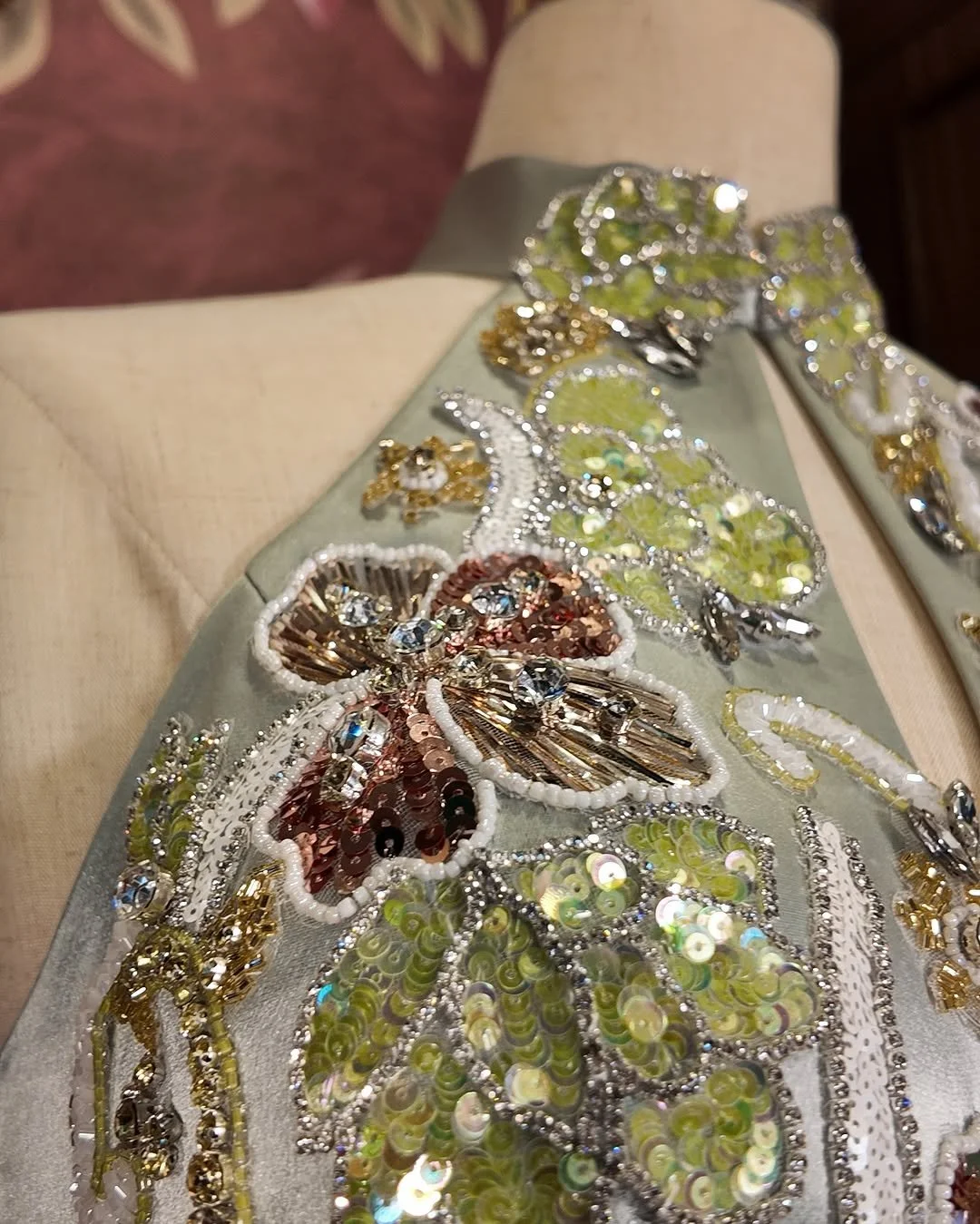 2.Meticulous Crafting Process: The making of each French embroidery qipao is incredibly intricate, requiring hundreds of hours of meticulous handcrafting from design to completion. Embroiderers painstakingly stitch floral and vine patterns onto silk or satin, breathing new life into the fabric.